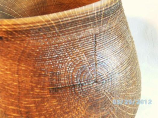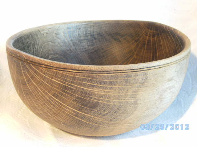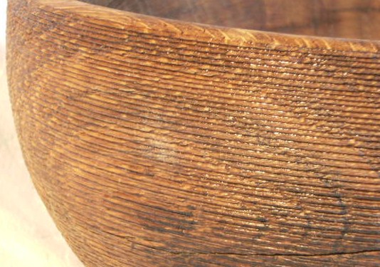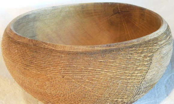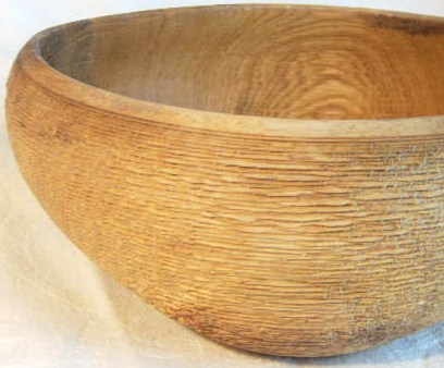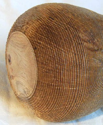 Gefäß aus Eiche, nass gedreht, strukturiert, gebürstet, gebleicht, gekälkt, geölt